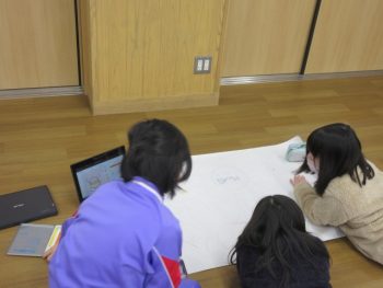グループごとに分かれて、飾りつけを作るグループ、司会の原稿を考えるグループ、歌の歌詞を書くグループ等、いろいろな準備を分担しています。