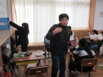 教室で先生とトランプをする子供もいました。