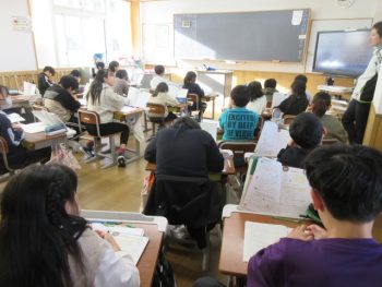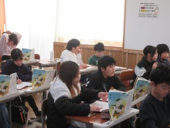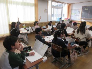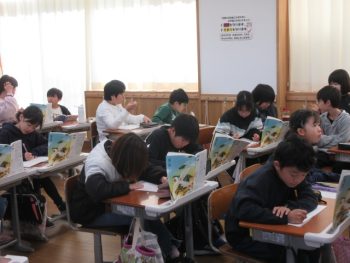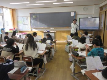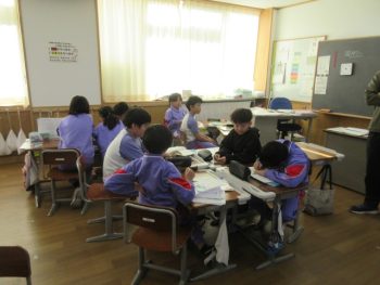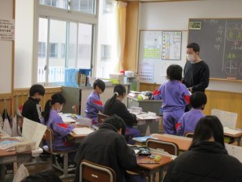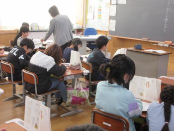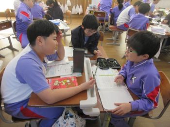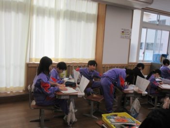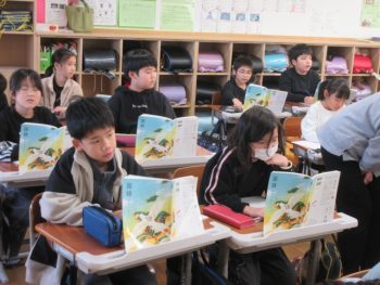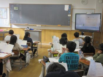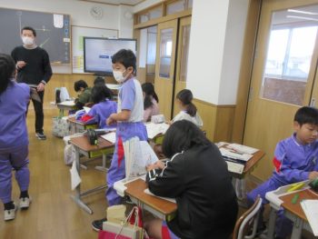 今朝、あいさつ週間の活動で、3年生が全校をあいさつして回りました。