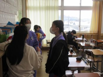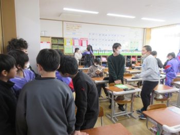6年生から5年生へ、集団登校班、委員会、縦割り清掃の引継ぎが行われました。