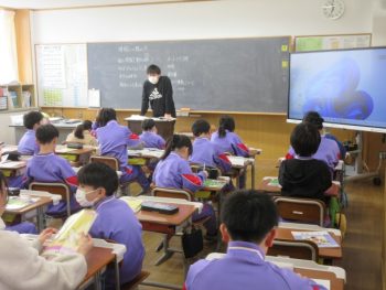 給食センターから栄養教諭の先生が来て話をしてくださいました。