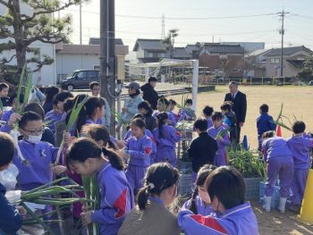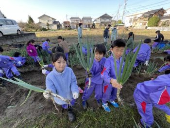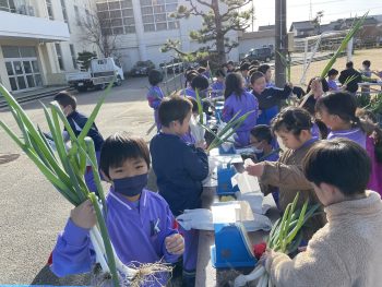 3年生が総合的な学習の時間で育ててきた窪ねぎを収穫しました。