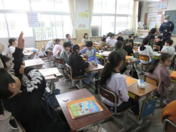 ちょうど、地域の保育園児が学校見学に来ていました。