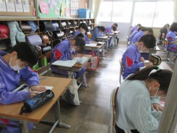 今日は、思い出を紹介するときに使うカードに英語で名前を書きました。