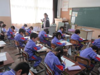 ドリルに書いた字を見直して、丁寧に書き直す子供もいました。