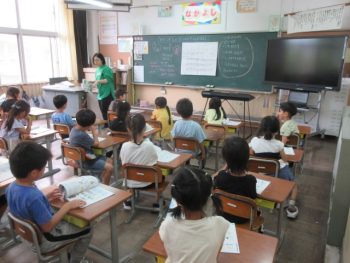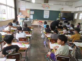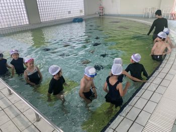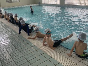 28日(金)には、2組が大浦の市民プールで水泳学習をします。