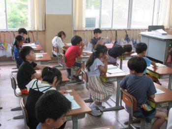 じっくりと文章を考えて、楽しみながら場面の絵をかいているようでした。