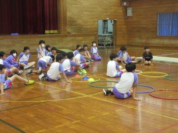 先生が体育館にいらっしゃるとハイタッチを求める子供もいました。