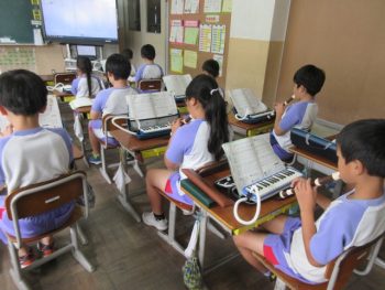 リコーダーと鍵盤ハーモニカで合奏をしました。