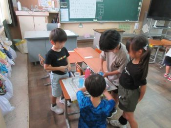 廊下が汚れたので、雑巾で拭いてくれる子供がいました。