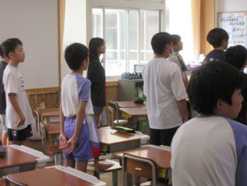 黒板に書かれた気を付けることを参考にする子供もいました。