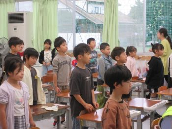 朝の会が終わったところです。