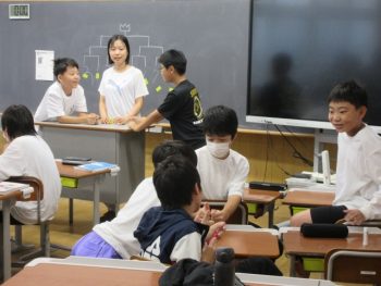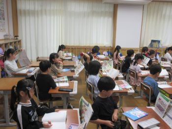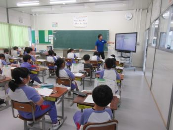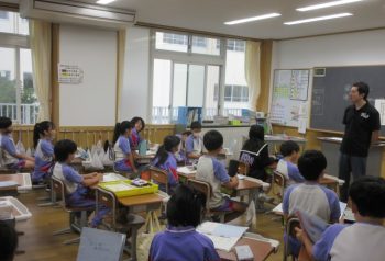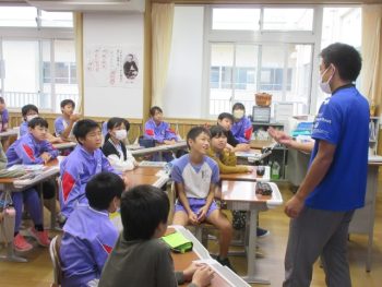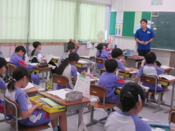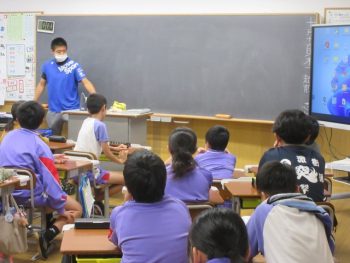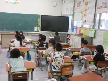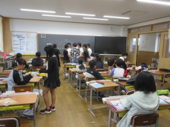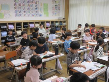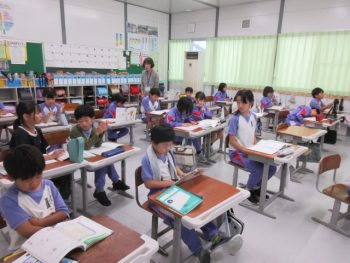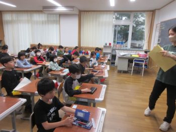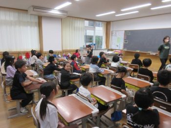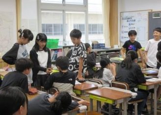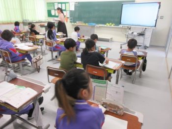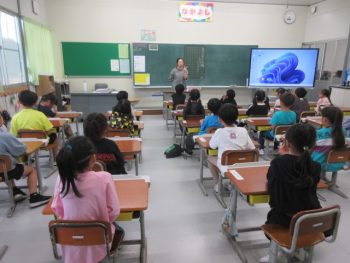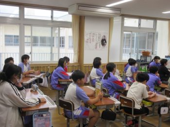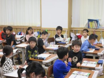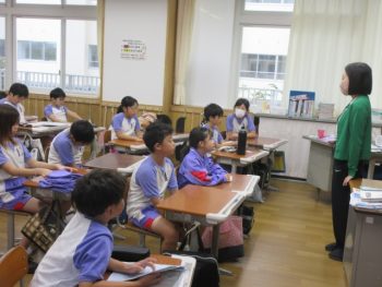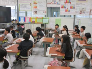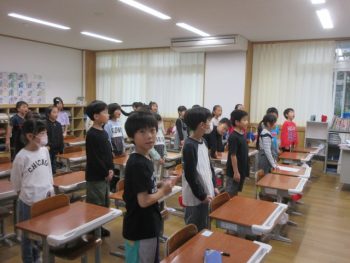 窪小学校では、おへそを向けて話を聞くことにしています。