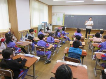 先生から、気温にあった服装を選んで風邪をひかないようにしましょう、と話がありました。