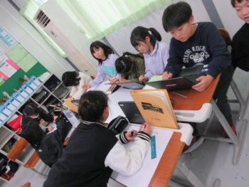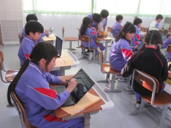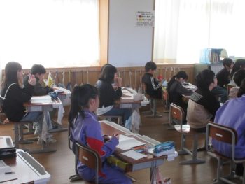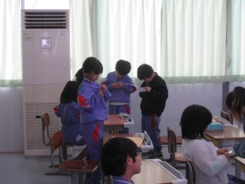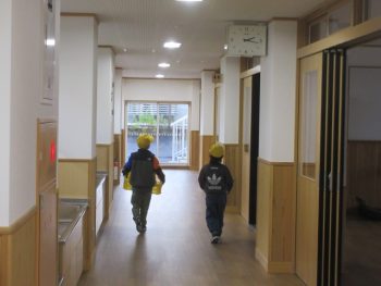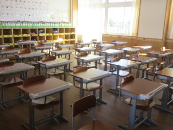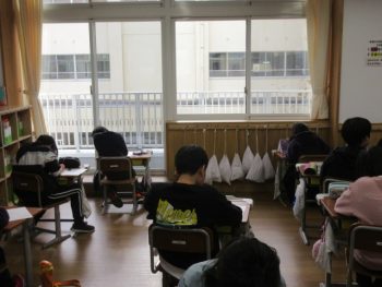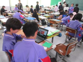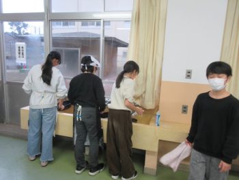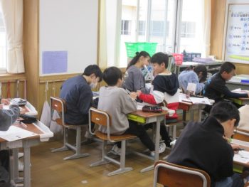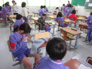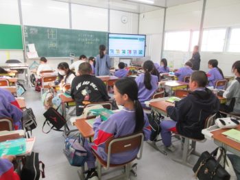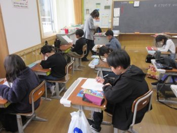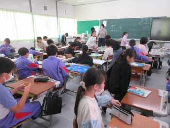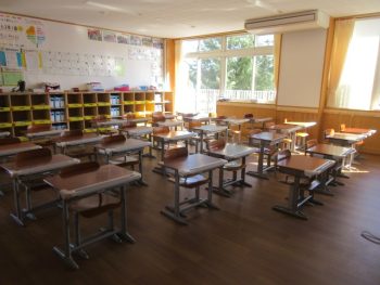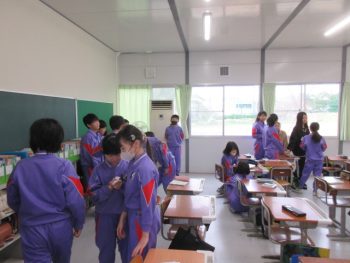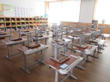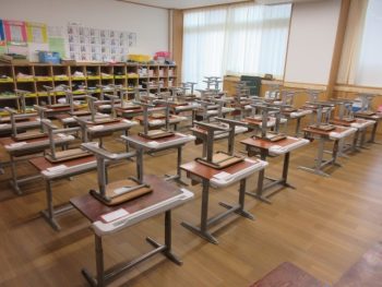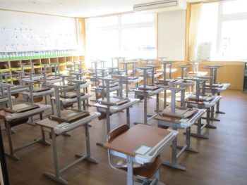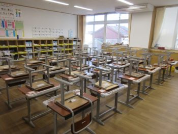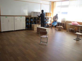 校舎長寿命化改修工事が完了し、教室の机やいすなどを移動しました。