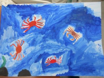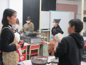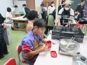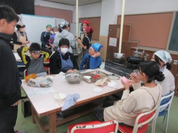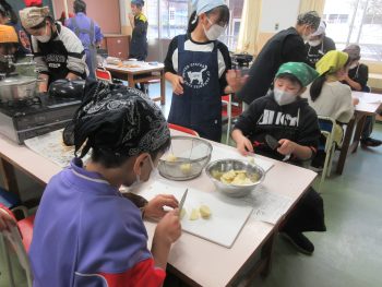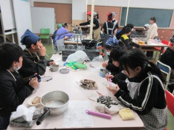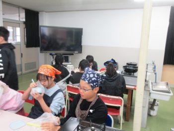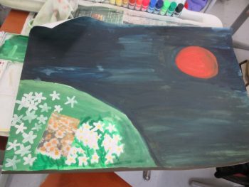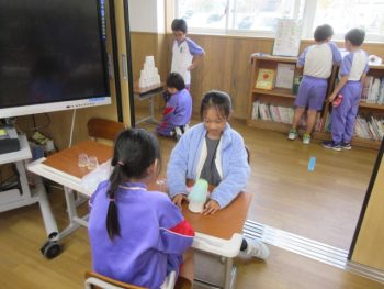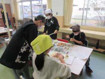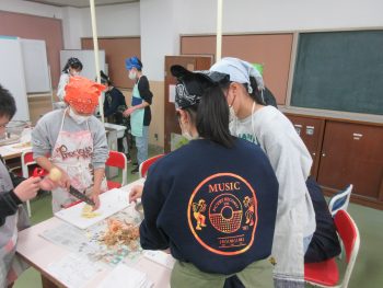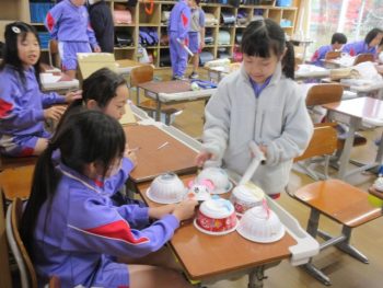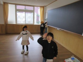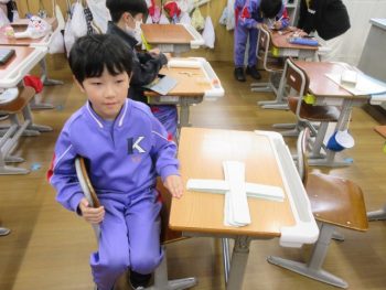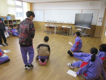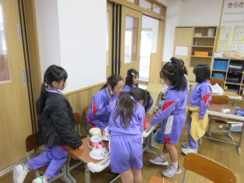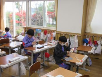 絵を描き終わった子供は、卒業式へ向けての飾りつけを作りました。