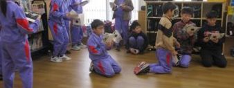 後から見てみると、今度は、劇をするときのことを考えてでしょうか、台詞が終わったら人が場所を交代しながら練習していました。