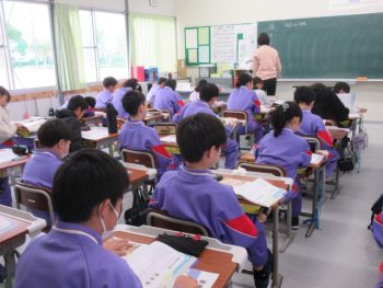 黒板に書かれた学習した内容をノートに写します。