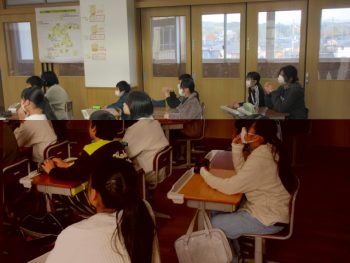 定置網漁法についての資料を興味津々に見ていました。