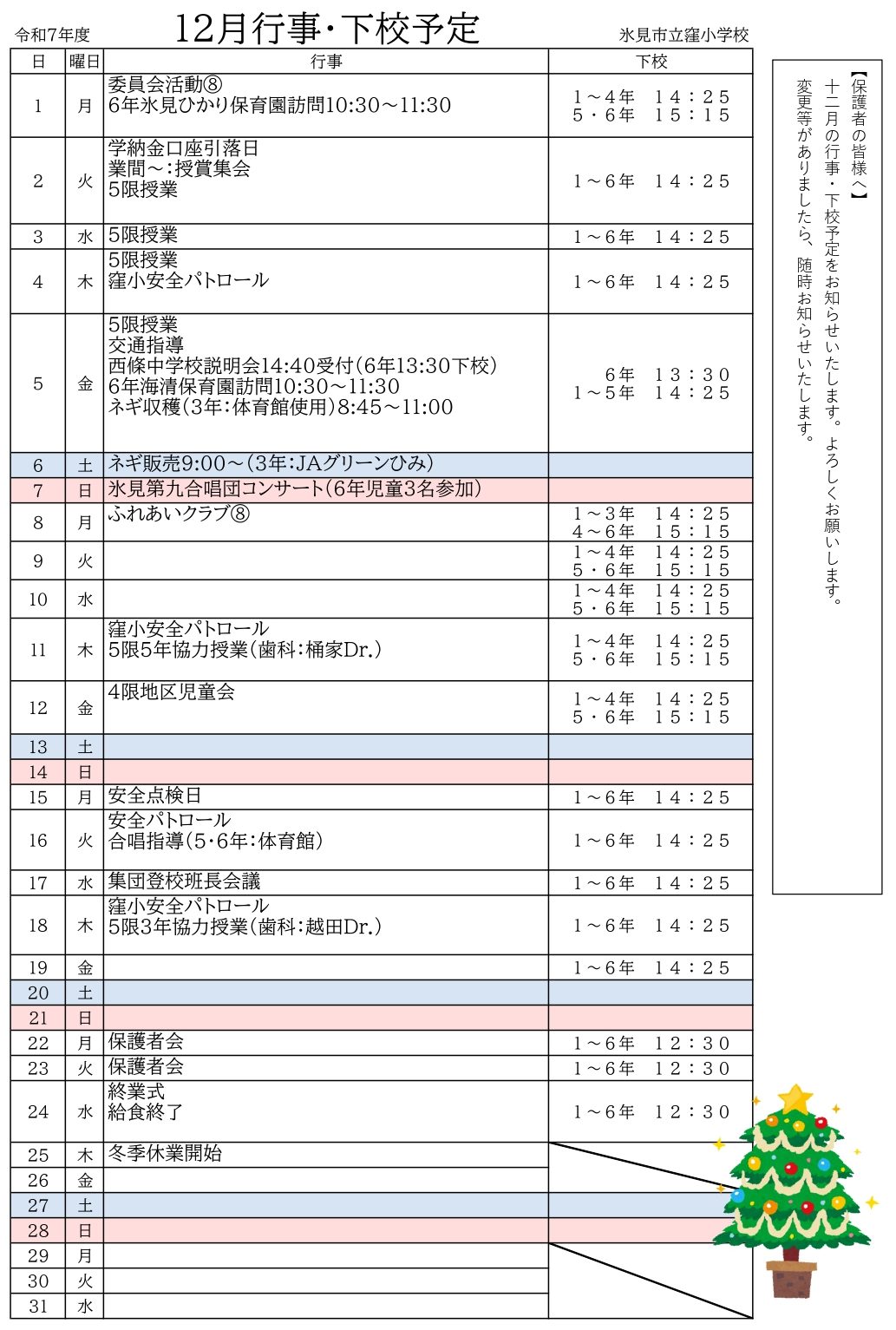 今日の窪小学校 11月25日