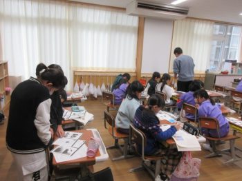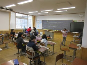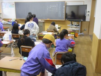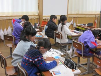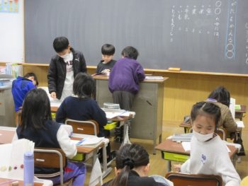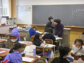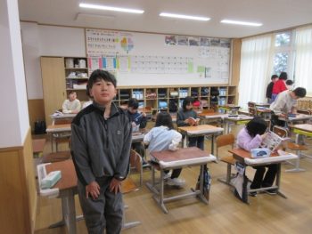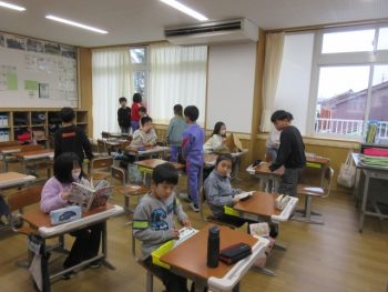 片付け終わった子供は、教室で本を読んで落ち着いて過ごしていました。
