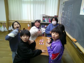 教室で先生とトランプをする子供もいました。