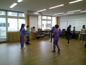 中央教室では、短縄や大繩ダブルダッチジャンプロープの練習をしていました。