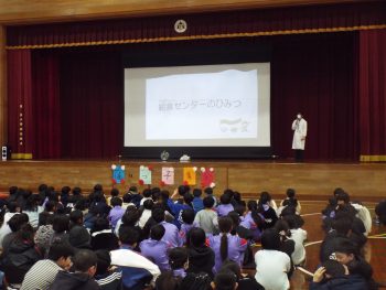 給食センターから栄養教諭の先生が来て話をしてくださいました。