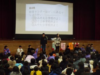 今は給食週間です。給食にちなんだクイズや発表をしてくれました。