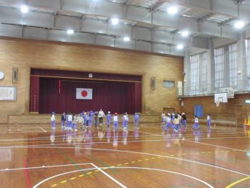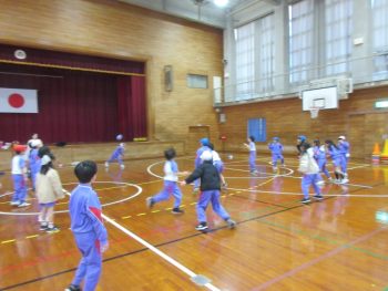 体育館でドッジボールをしていました。