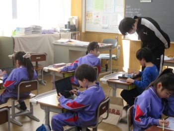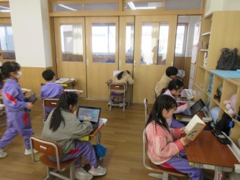 テストが終わって、本を読む子供やタブレットを使う子供がいました。