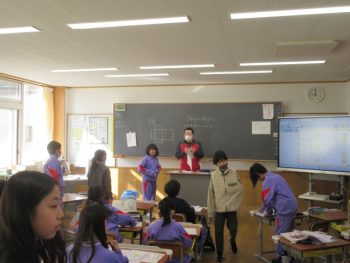 今年1年間総合的な学習の時間で取り組んできたことを2年生に伝える練習をしていました。