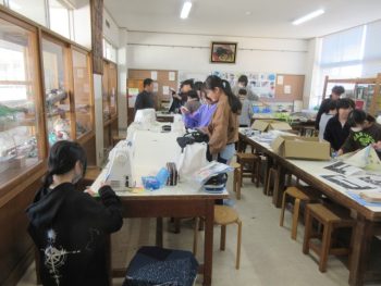 ときどきミシンをうまく動かせなくなって、先生に助けてもらう人もいました、みんな楽しそうでした。