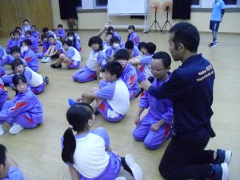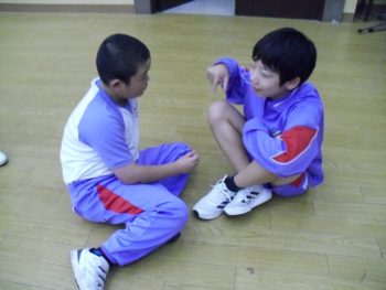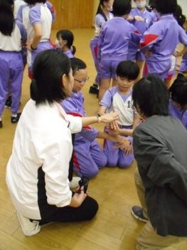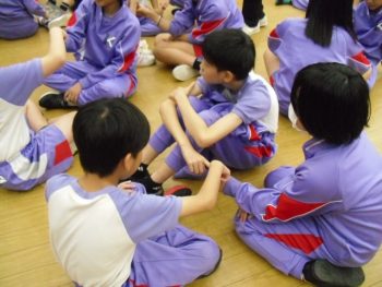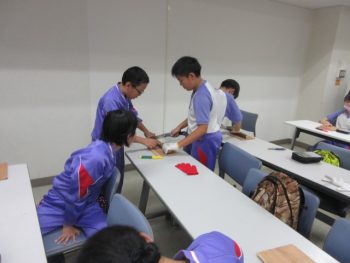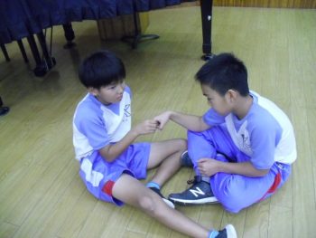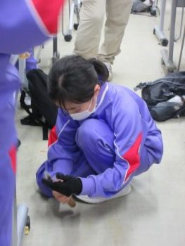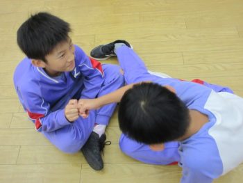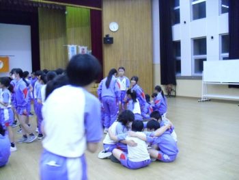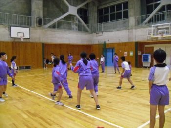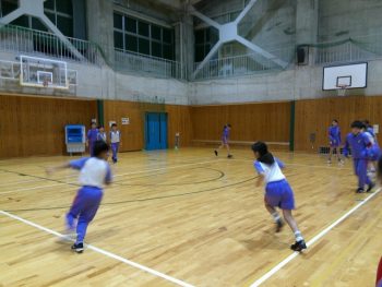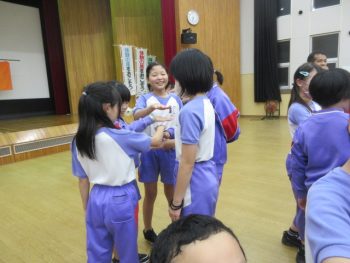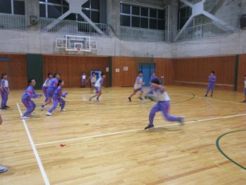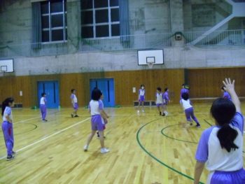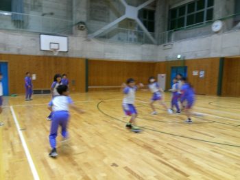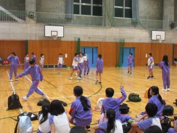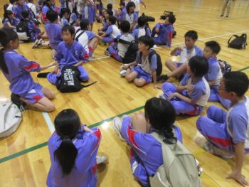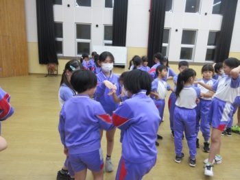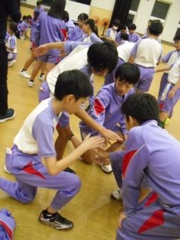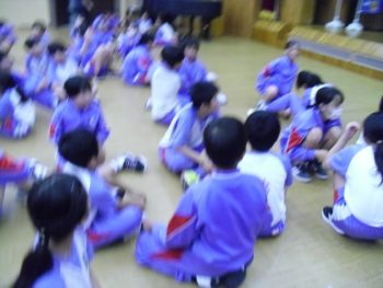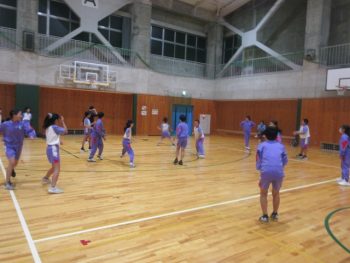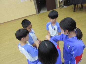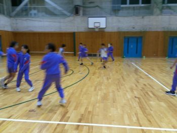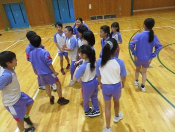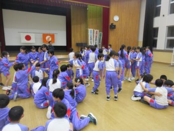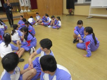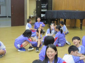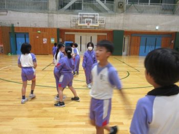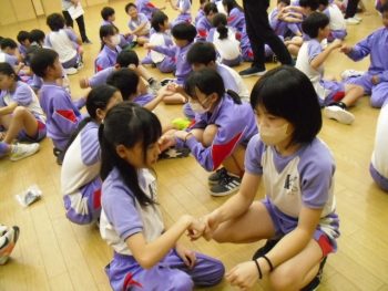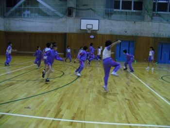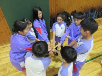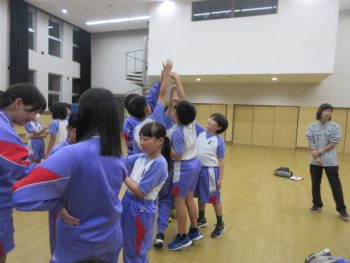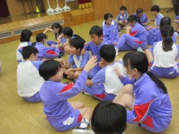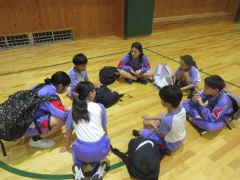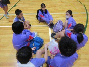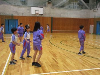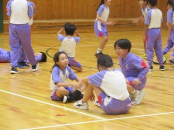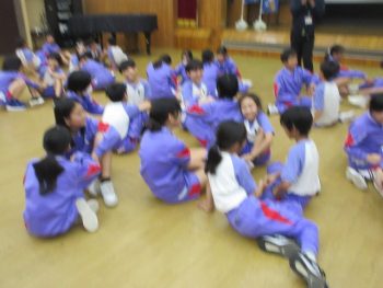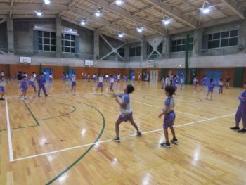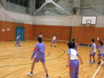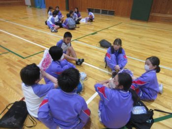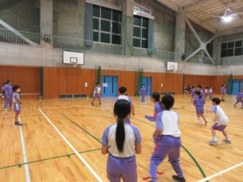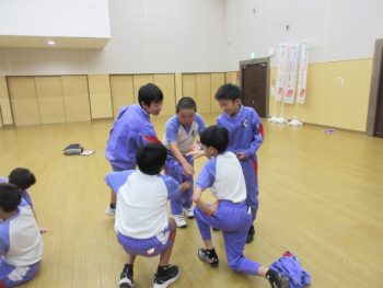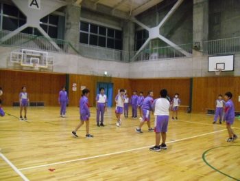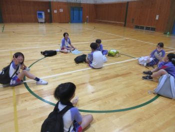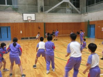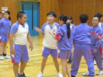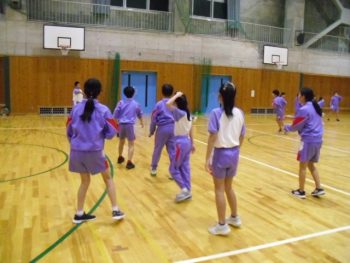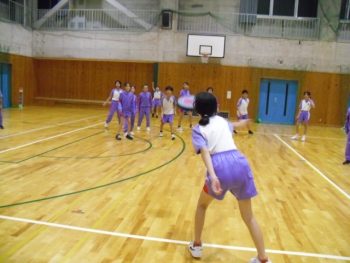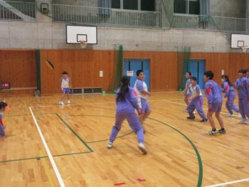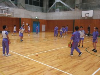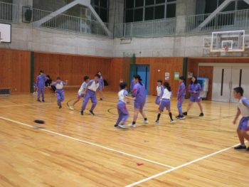 体育館で、柔らかいフライングディスクでドッジボールをしました。