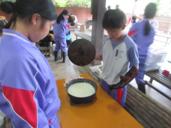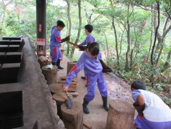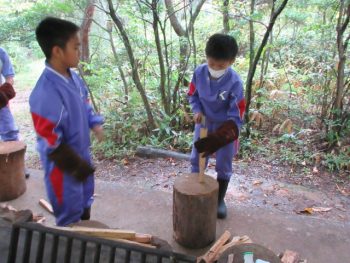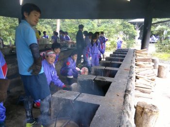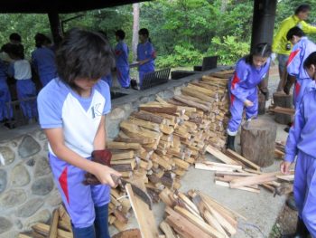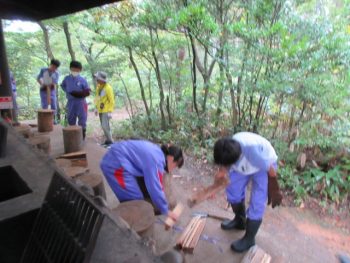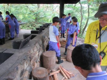 かまどから煙が出ましたが、頑張って火をおこしました。