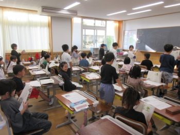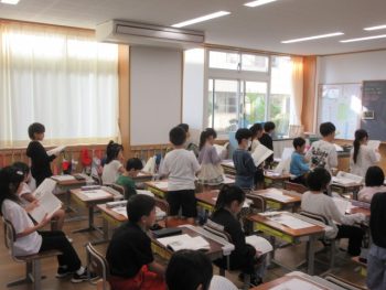 自分たちの番に立って読みます。