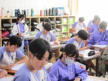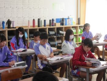 席に着いて、道徳を始めます。