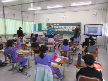 黒板に、AからZまで順番に並べてはってあるカードを見ながら並べていました。