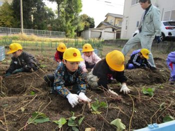 JAの方には、昨日も芋のつるを切って子供たちが掘りやすいように準備してくださいました。