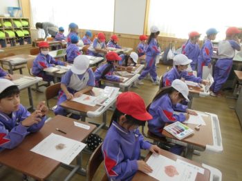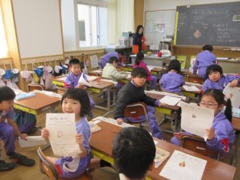 教室に帰ってチューリップの球根を植えたことをカードに書きました。