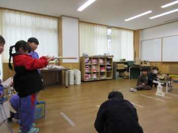 いろいろなコーナーで1年生がおもちゃで遊びました。