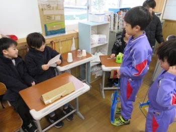 2年生が生活科で作ったおもちゃを使って、1年生と「おもちゃパーティー」を開きました。