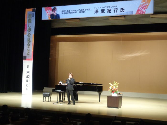センター日誌テノールオペラ歌手・澤武紀行氏を講師にお招きし、芸術文化館にて講演会を開催しました。 参加した市内中学校2年生および義務教育学校8年生は、澤武氏の豊かなご経験に基づく思いや、生き方に触れることで、未来に向かって自分を高め