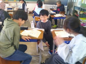 6年生は国語の学習を頑張っています。今日は、伝え方を学んでいました。グループで考え、全体で話し合っていました。学習に向かう態度がしっかりと身に付いていますね。