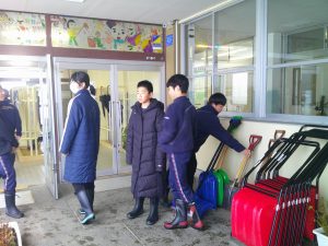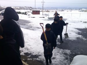 6年生は朝の「チョボラ(ちょこっとボランティア)」に率先して取り組んでくれています。今日は雪かきとスコップやスノーダンプの整頓を行ってくれました。寒さに負けずに頑張っています。ありがとう。