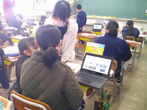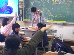 5年生は外国語の学習を頑張っています。今日は、「何が好きか」を英語で聞き合っていました。ALTの先生とも積極的に会話している姿がよかったです。見ているみんなも応援していました。