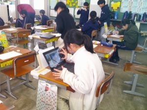 5年生は図工の学習を頑張っています。今日は「版画」のデザインを考えていました。インターネットを活用し、いろいろなデザインを参考にして下絵を描いていました。仕上がりが楽しみですね。