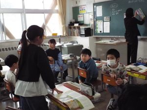 4年生は総合的な学習の時間を頑張っています。今日は宮田地区の環境について話し合っていました。自分たちでもできることに取り組もうと、真剣に話し合っていました。どんな活動につながるのか楽しみですね。