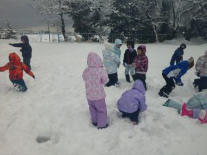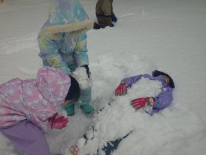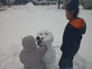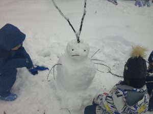 1年生は生活科の時間に雪遊びを楽しみました。一面の雪にみんな大喜びです。雪だるま、雪合戦、寝転んだり、おいかけっこしたり、たくさん雪遊びを経験しました。楽しい時間でしたね。