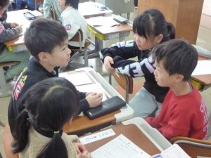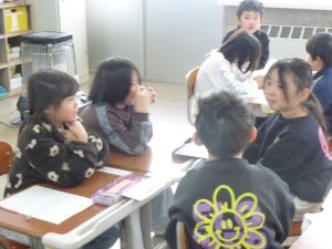1年生は生活科を頑張っています。今日は冬休みに家で「お手伝い」をしたことについて振り返っていました。具体的にどんなことをしたのか、話し合っていました。また、自分のがんばりを評価していました。